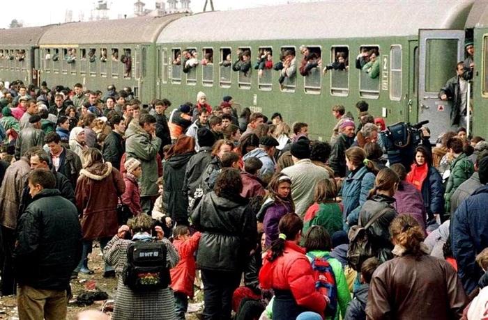 Treni i radhës po ngarkohej me shpejtësinë e dritës. Në përpjekje për të hipur të gjithë bashkë, dikush më ka ndihmuar dhe kam hipur nga dritarja për t’u ndodhur në një grumbull njerëzish, që ngulfateshim nga njëri-tjetri. Derisa po hipja në tren, një tjetër përjetim i rëndë. Një fëmijë 2-3 vjeç që qante, përpiqeshin t’ia gjenin dikë të familjes. Shumë zëra, britma, ‘jo, nuk i ka familjarët në tren’... ‘a hipi filani’, ‘ku mbeti ai’, ‘ku mbeti ky’... Dhe, kur dukej se më nuk kishte vend as për gjilpërë në trenin famëkeq, u nisëm, pa ditur destinacion. Mbaj mend se treni u ndal në Fushë-Kosovë për më se një orë. Dhe aty dëgjoje skenarë të mundshëm, nga më të ndryshmit. “Tash do të na vrasin”, “Do t’i ndajnë burrat nga gratë”, “Do të na dhunojnë”... Ndalja tjetër ndodhi në Han të Elezit. Nga dritarja e trenit në kodrën përballë ndalesës, kam parë dy kufoma njerëzish të sapodjegura... Skenarët nga të dëbuarit vazhdonin. Trupi na ishte shtangur, e lëvizja më e vogël ishte e pamundur. Vetëm kokën mund ta ktheje në ndonjë drejtim, nuk kishte vend as duarve t’u ndërroje pozicionin.