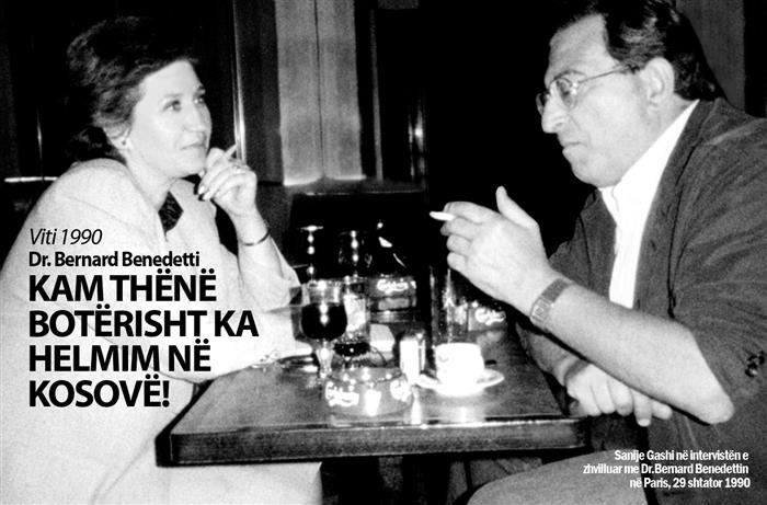 Dr. Benedetti: Unë bazohem vetëm në argumente. Kur kam vendosur të them se ka pasur helmim, unë kam zgjedhur jo rastësisht një gazetë provansale, e cila e mbulon tërë pjesën jugore të Francës. Me qëllim ia kam dhënë ekskluzivitetin asaj gazete. Kam thënë botërisht se në Kosovë – ka helmim, meqë jam bindur se ka pasur helmim. Kam pas mbledhur mjaft argumente klinike, biologjike etj., që më kanë mundësuar të them se ka pasur helmim. Sikur të mos kisha qenë plotësisht i sigurt dhe i bindur, nuk do ta kisha thënë dot. Me këtë rast, nuk mund të them se cili do të jetë qëndrimi i Francës ndaj Kosovës, por mund të them se puna jonë ka bërë ndikim në qeverinë franceze!